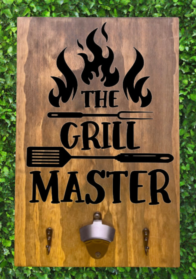 These large signs are solid wood and can be stained to any color within our stain chart. They are sealed to protect the wood from deteriorating in any weather. This item is great for anyone that loves to BBQ! Comes with bottle opener and hooks for the BBQ utensils.