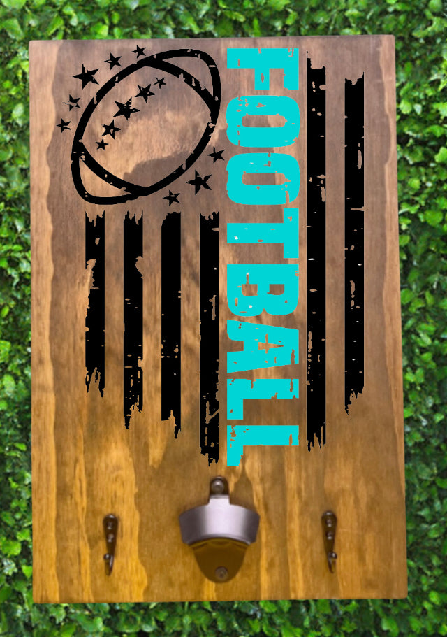 These large signs are solid wood and can be stained to any color within our stain chart. They are sealed to protect the wood from deteriorating in any weather. This item is great for anyone that loves to BBQ! Comes with bottle opener and hooks for the BBQ utensils.