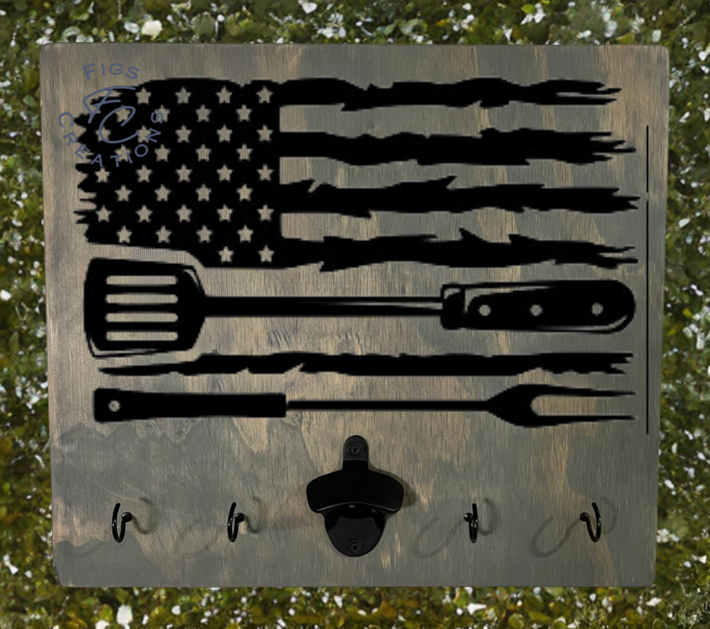 These large signs are solid wood and can be stained to any color within our stain chart. They are sealed to protect the wood from deteriorating in any weather. This item is great for anyone that loves to BBQ! Comes with bottle opener and hooks for the BBQ utensils.