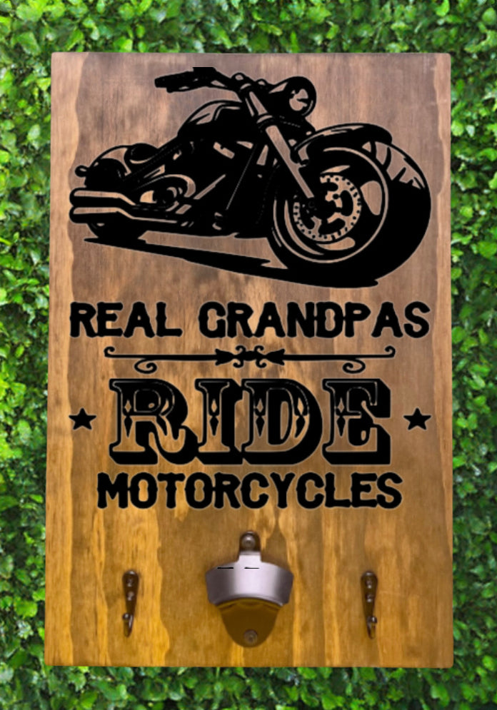 These boards are solid wood and can be stained to any desired color within our stain chart. They are sealed to protect the wood from deteriorating in any weather. They are completely customizable. The board includes a steel bottle opener and hooks to hang BBQ utensils.