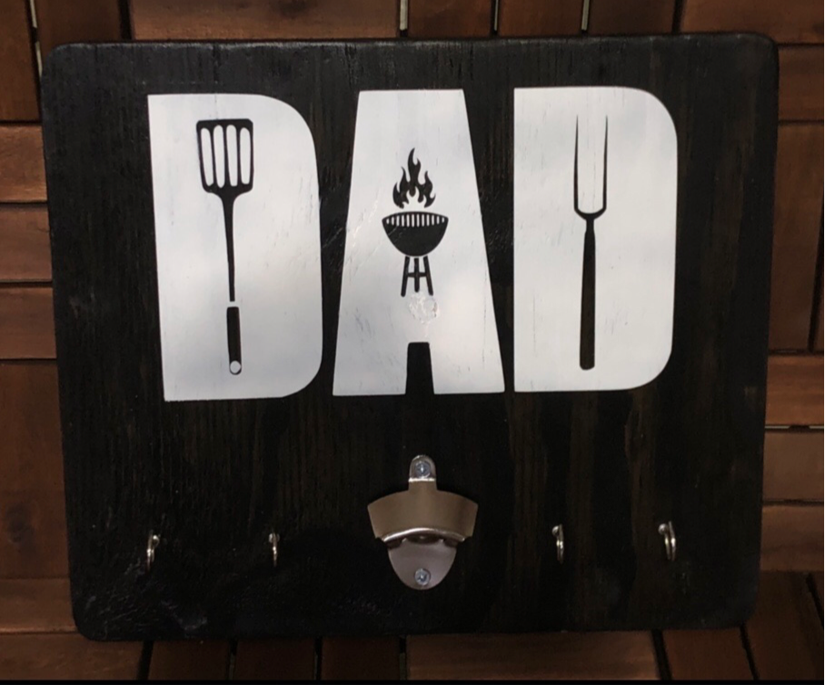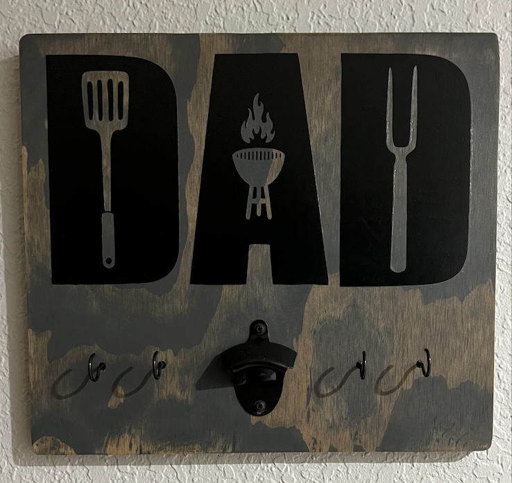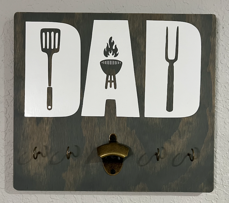 These boards are solid wood and can be stained to any desired color within our stain chart. They are sealed to protect the wood from deteriorating in any weather. They are completely customizable. The board includes a steel bottle opener and hooks to hang BBQ utensils.