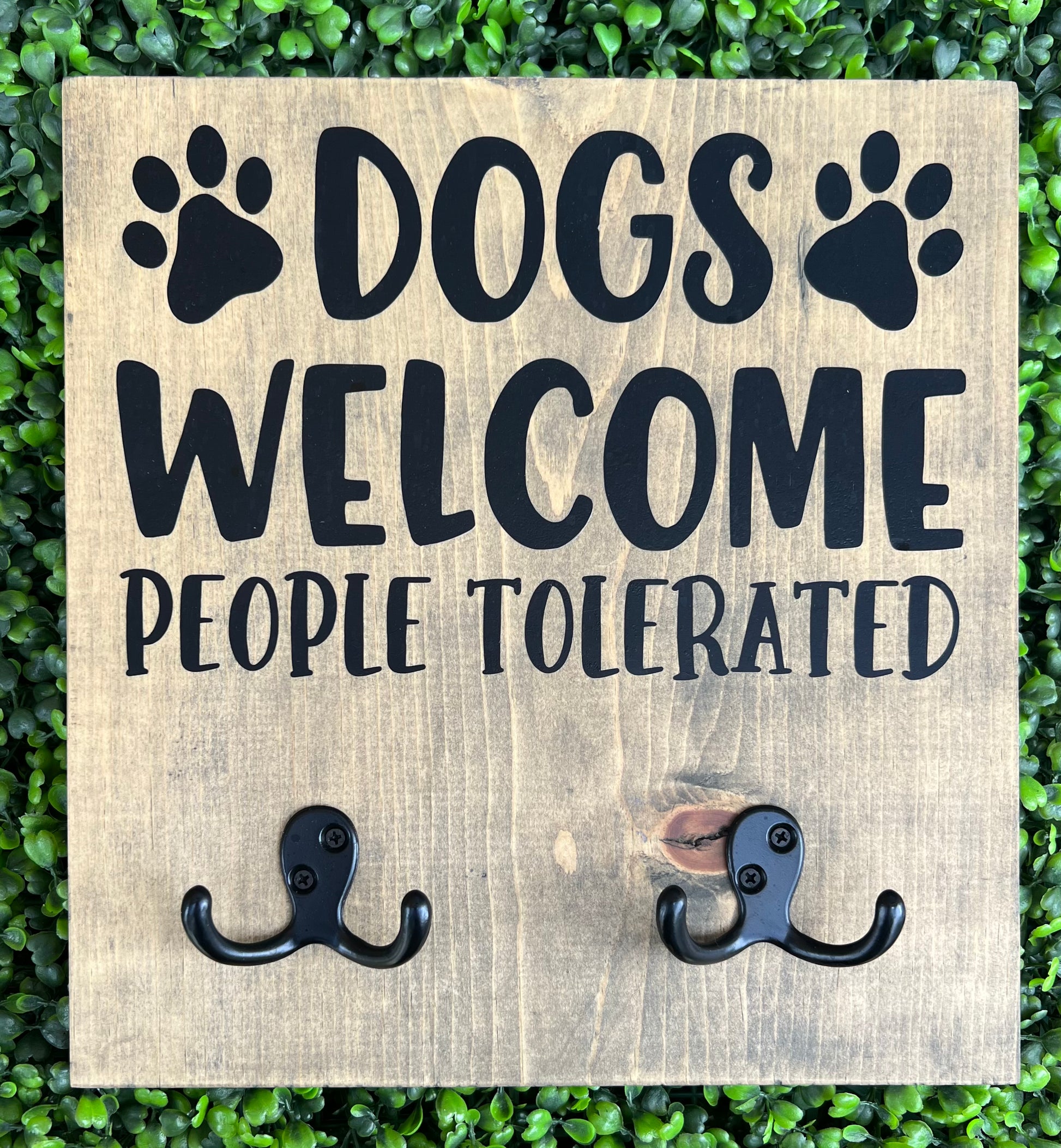 This board is not only funny, but adorable too. This board is solid wood and can be stained to any desired color within our stain chart. The board includes a steel hooks to hang keys & leashes.