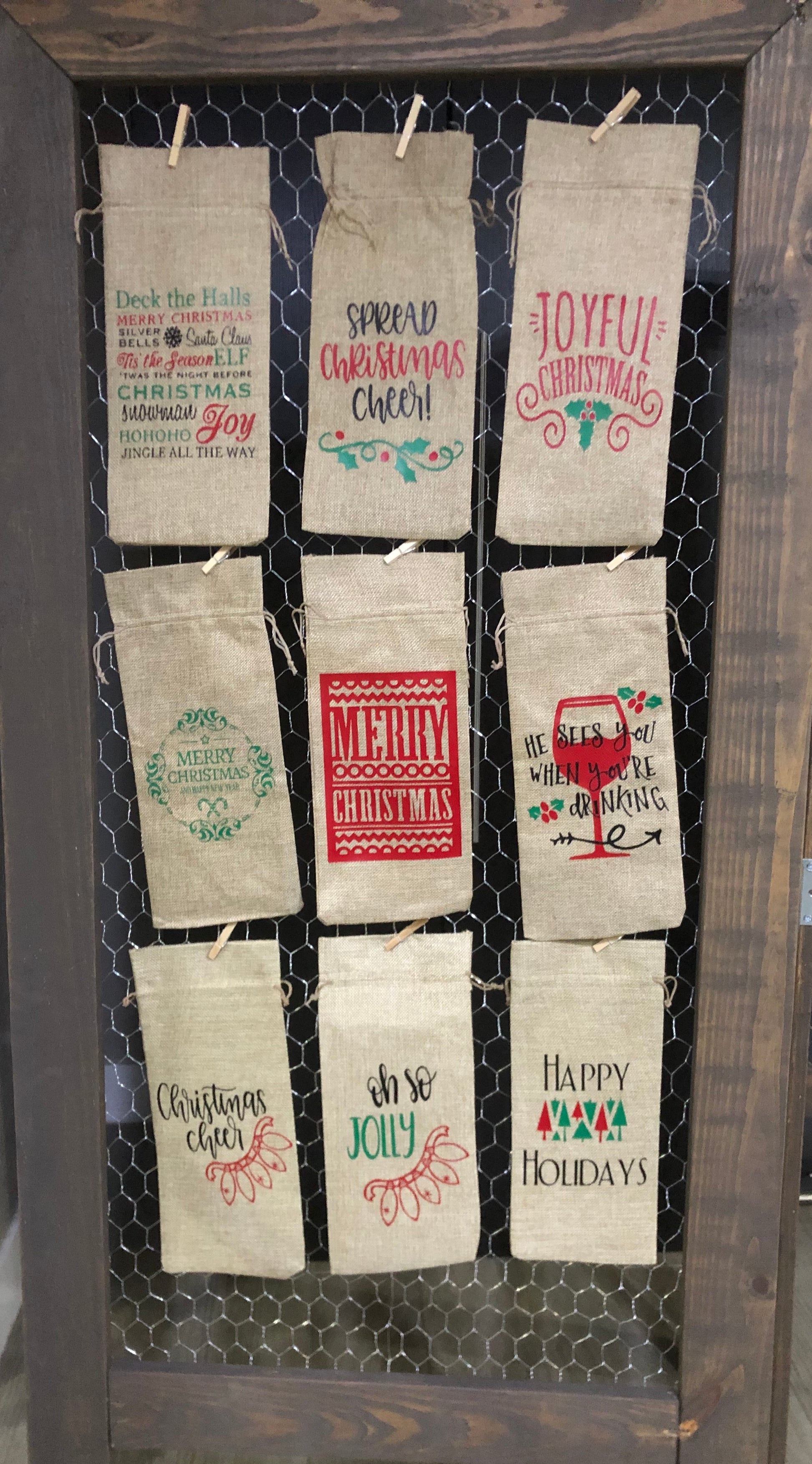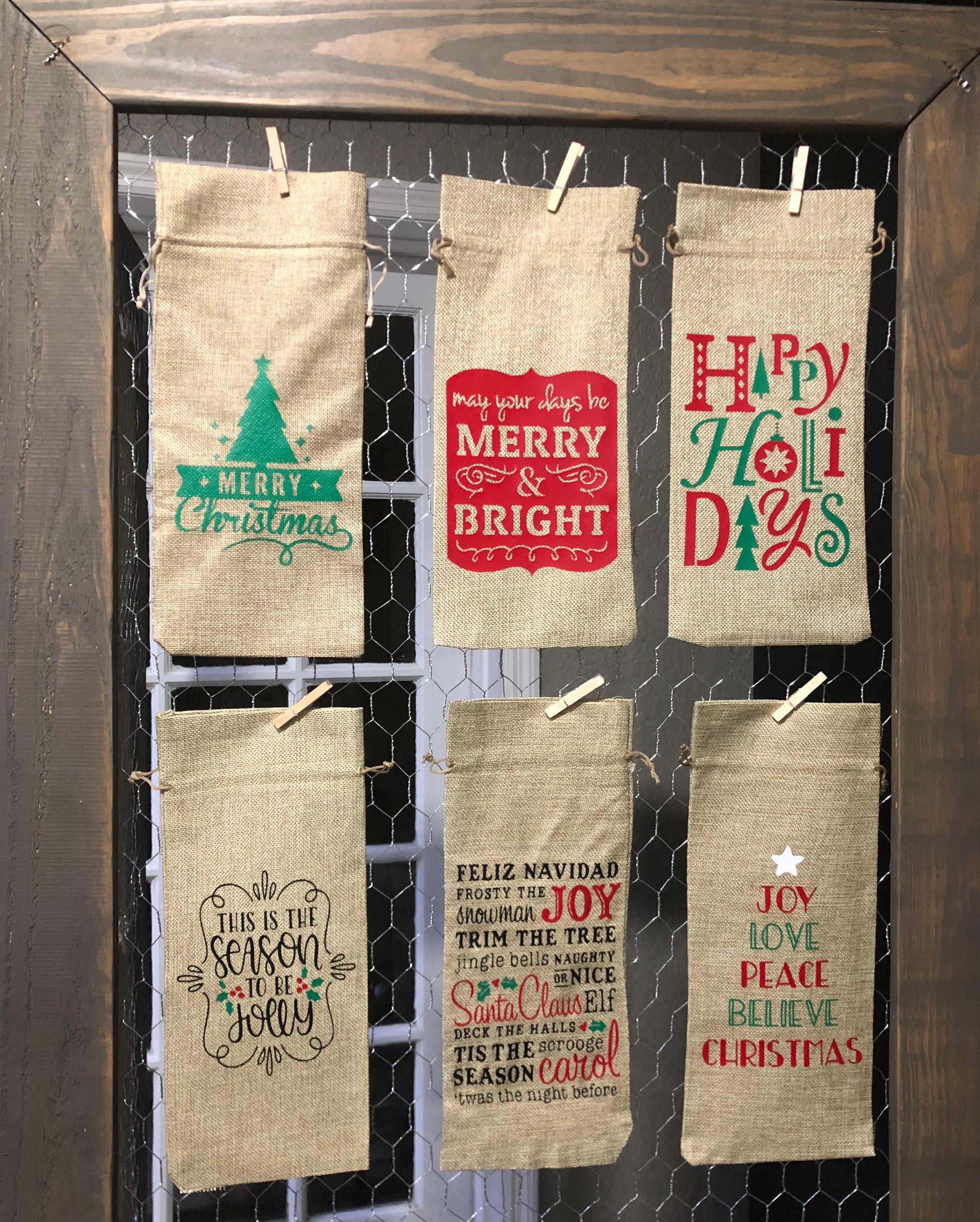 The burlap bags can be used for Champagne and thin liquor bottles as well.